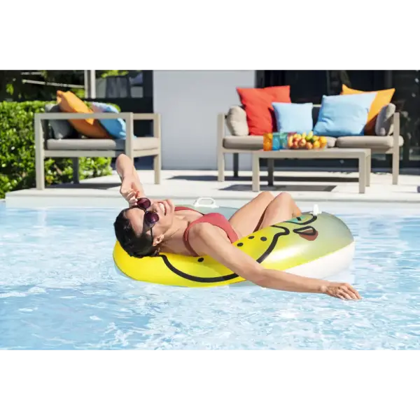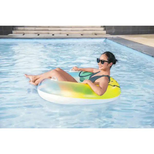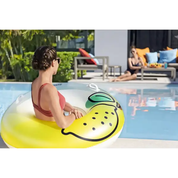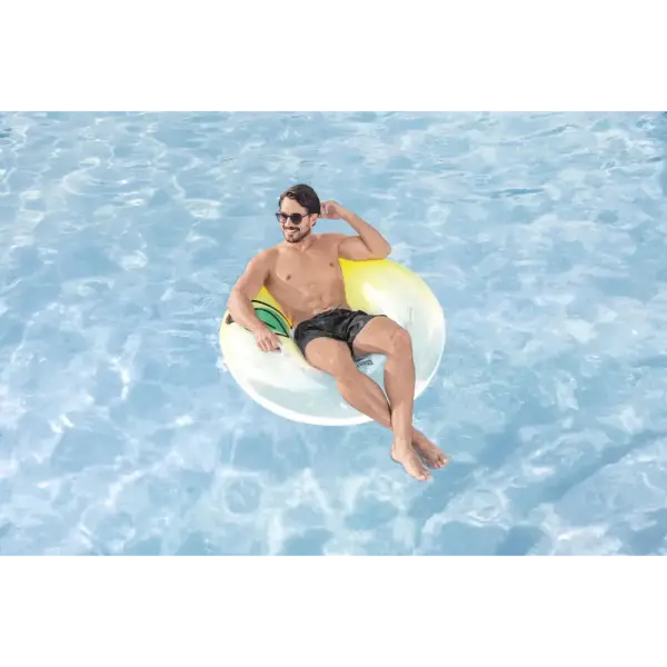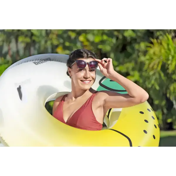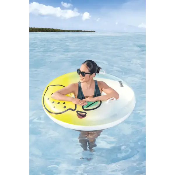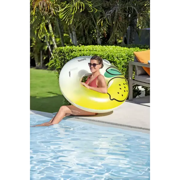When life gives you lemons, squeeze the day and float your cares away on the Bestway® Fresh Squeezed™ Lemon Swim Tube! Designed for one adult, this easy to inflate swim tube is simply the best because it features bright lemon graphics and two sturdy heavy-duty handles for easy entry (and transportation!) onto the swim tube. When the fun in the sun is over, easily deflate and store the swim tube so you can enjoy it for many sunny days ahead. Put on your shades, kick back and relax while you soak up the warm sunshine on the Bestway Fresh Squeezed Lemon Swim Tube!