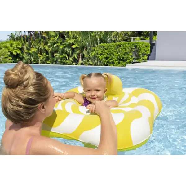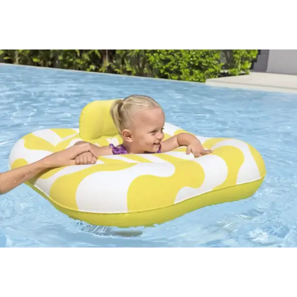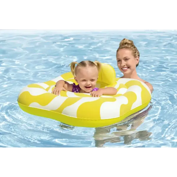 Let your little one soak in some of their very first pool experiences with the Swim Safe ABC™ Comfort Plush™ Wavy Square 2-Ring Inflatable Baby Boat. This Step A float is designed to help your child master the basics of water entry, allowing your child to get used to being in the water with the extra comfort and support they need. Featuring smooth and soft Comfort Plush™ velvety material, this baby boat would not stick to your childs skin and would not get too hot under the sun making it the perfect accessory for a warm day at the pool! The diaper-style seat offers comfort and security, with a small headrest for added support. Plus, the effortless inflation, deflation and storage makes this baby boat easy to store for multiple seasons or vacations. Brighten up your childs summer with the Comfort Plush Square 2-Ring Inflatable Baby Boat!