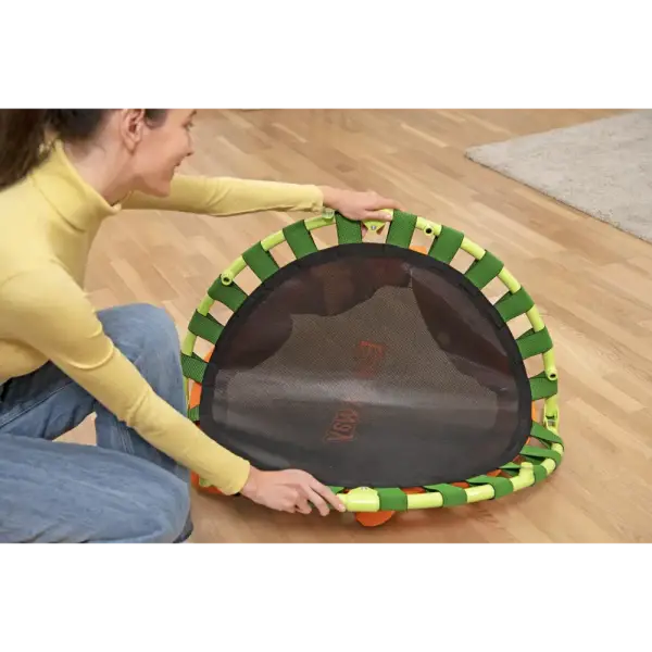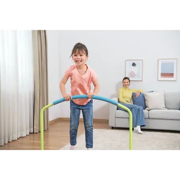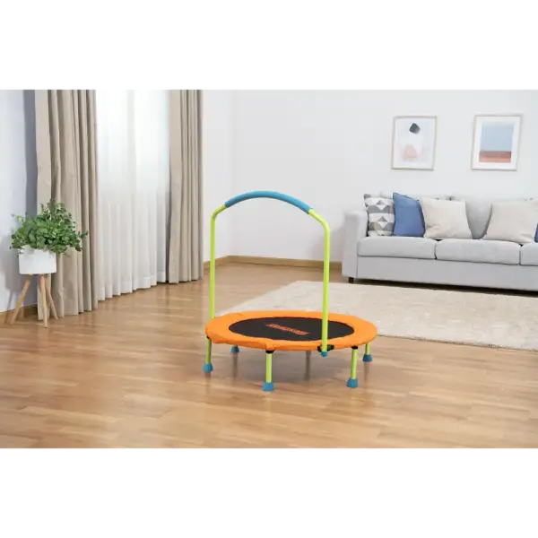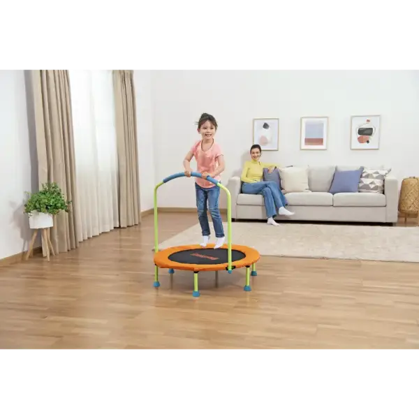The Bestway® WonderJump™ Trampoline is the perfect way to help your preschooler bounce the day away to get their energy out and boost their core and gross motor skills. Featuring a stabilizing handlebar with soft, foam grip, your child, age 3+, can improve their balance, coordination and strength as they laugh and hop on the WonderJump Trampolines durable surface. The trampoline sets up in minutes with no tools required and fits most small spaces. Plus, it features non-slip foot pads to keep the trampoline in place. When your child is done with the trampoline, simply remove the balance bar, unscrew the feet and fold to easily stash it away thanks to its compact design. Every day can be filled with bouncing play with the Bestway WonderJump Trampoline.