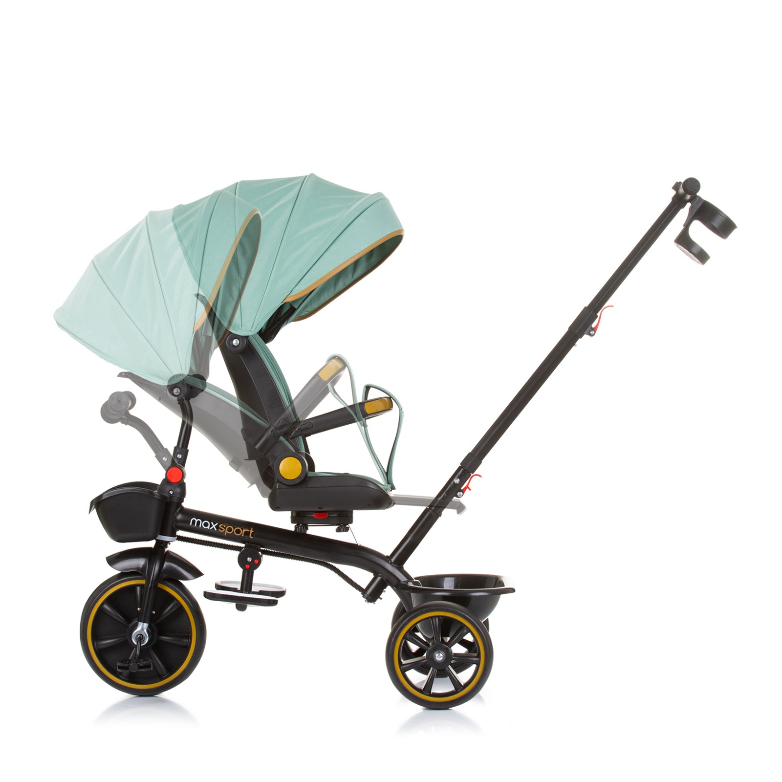• Рачката за родител и заштитната одбојница се отстранливи, така што трициклот се трансформира  за поголеми деца.