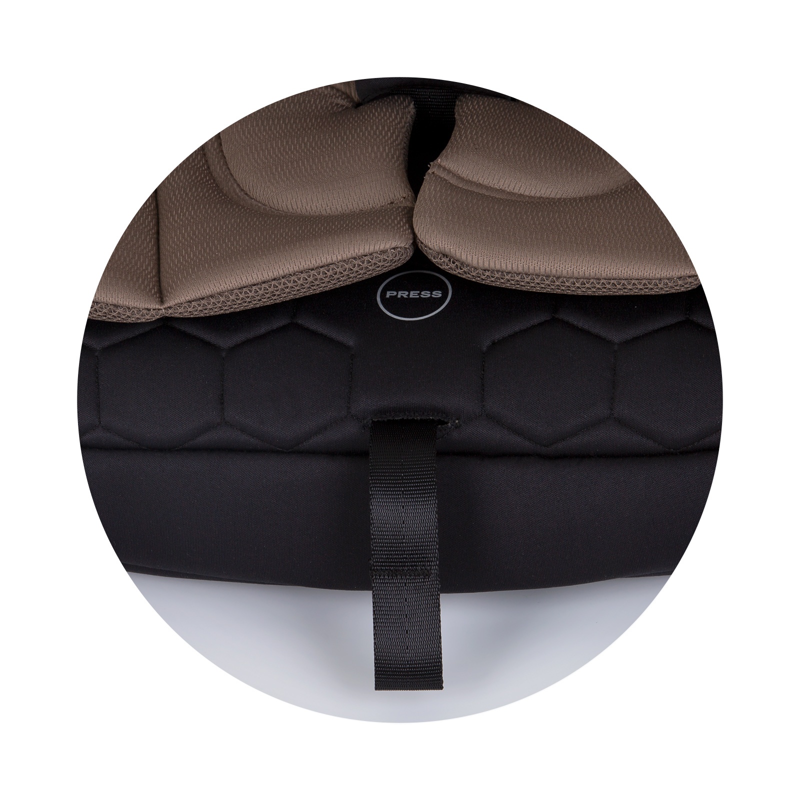 • Безбедносен појас во 5 точки со меки обвивки на рамената.