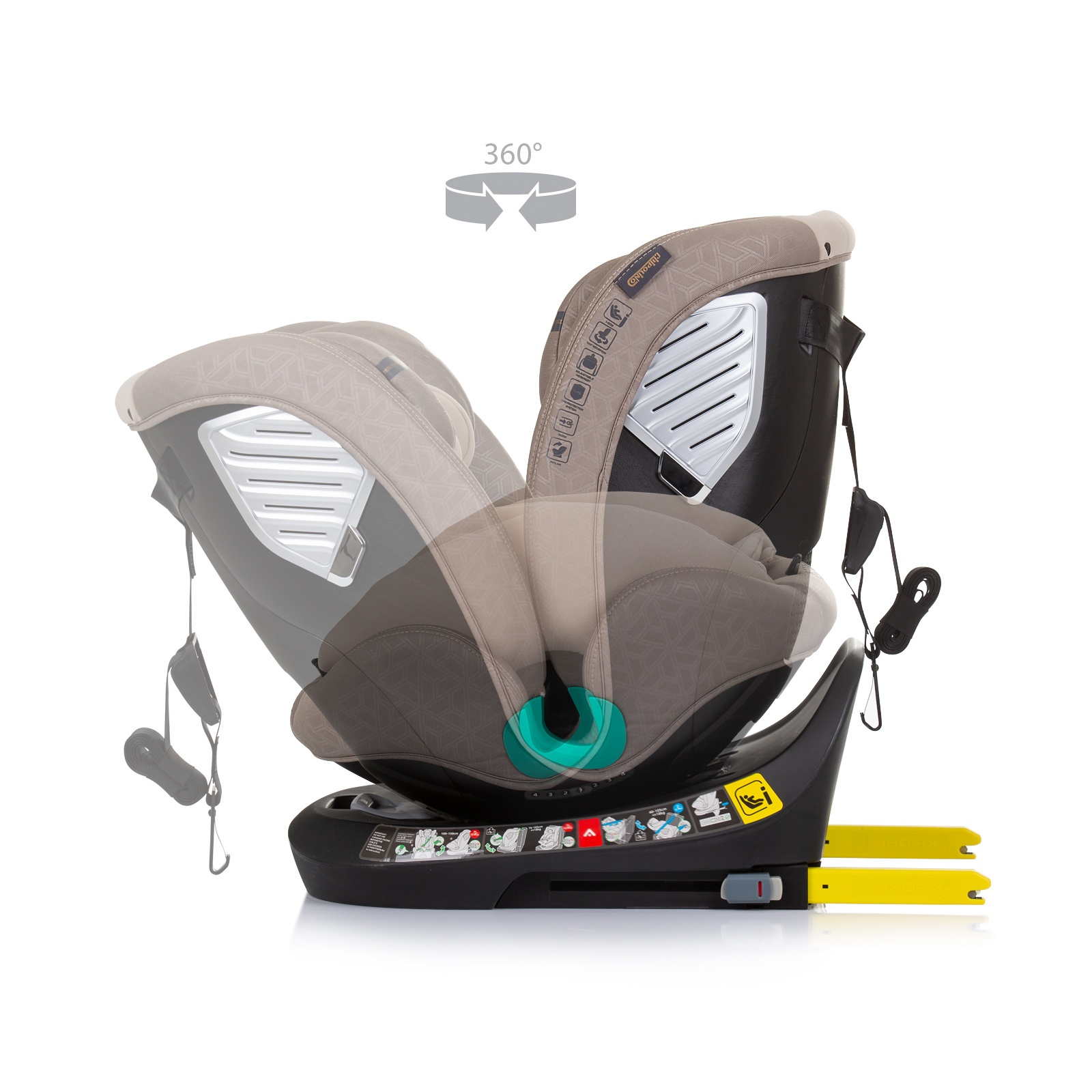 • Можност за прицврстување на седиштето во возилото со сигурносни појаси за деца со висина од 100-150 cm.