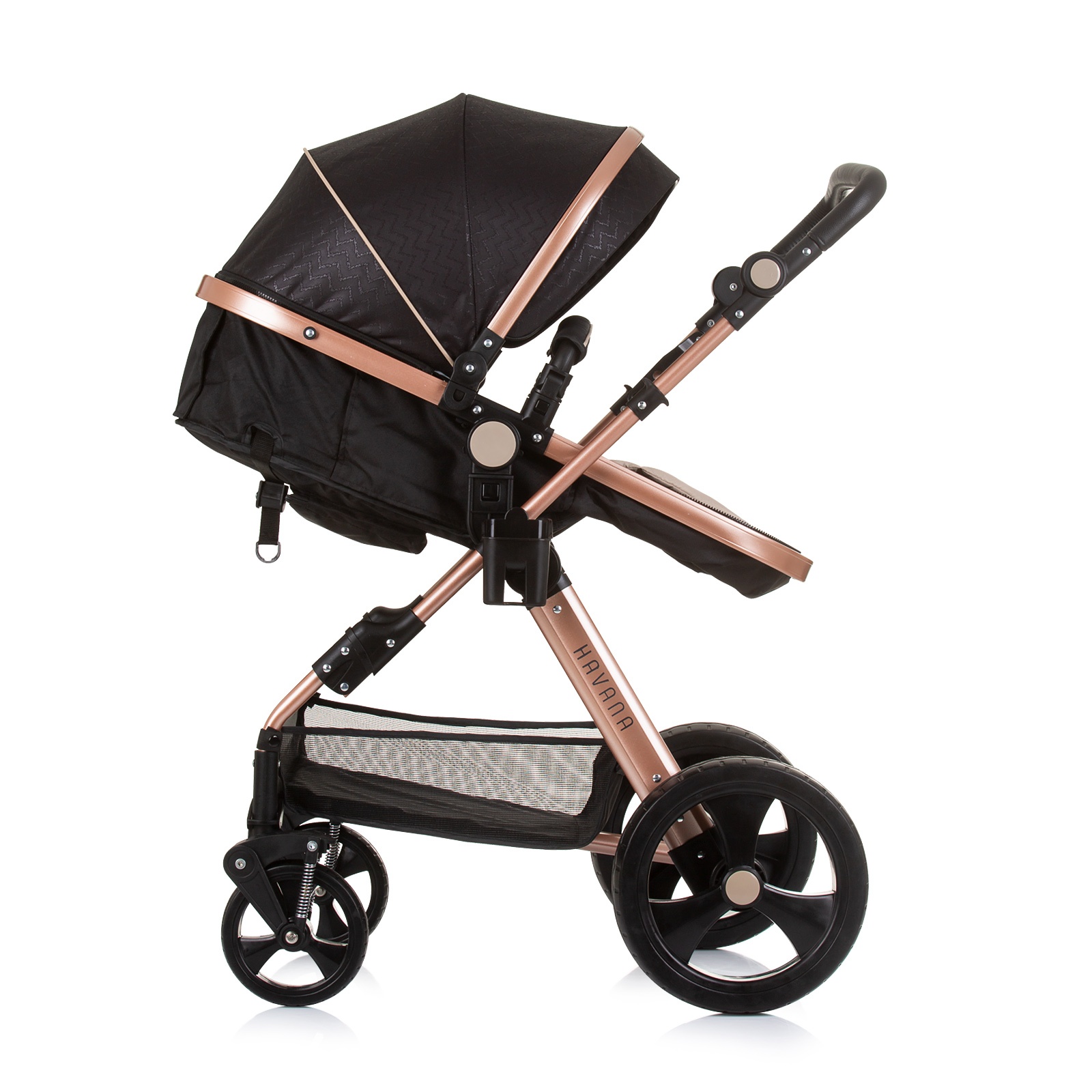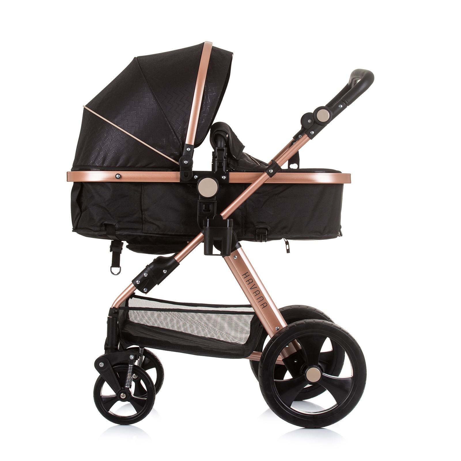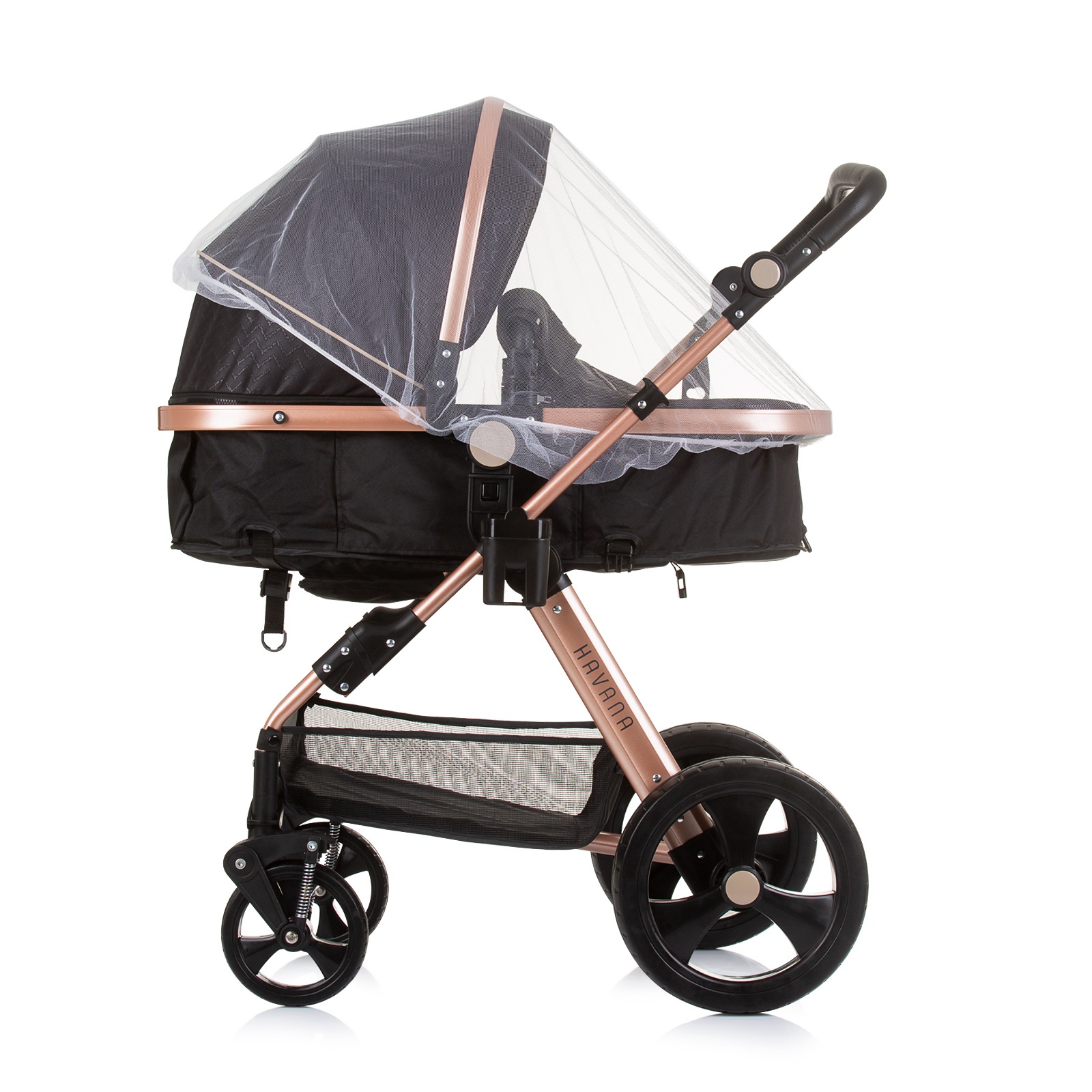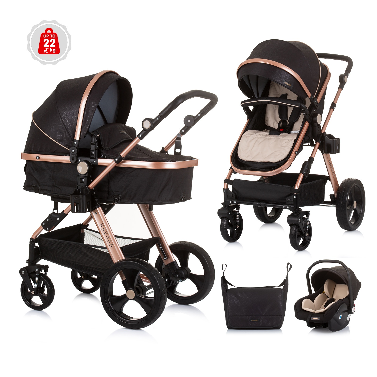 ХАВАНА бебешката количка е дизајнирана за родители кои го сакаат убавото. Лесното шасија и бројните додатоци го надополнуваат уникатниот дизајн.