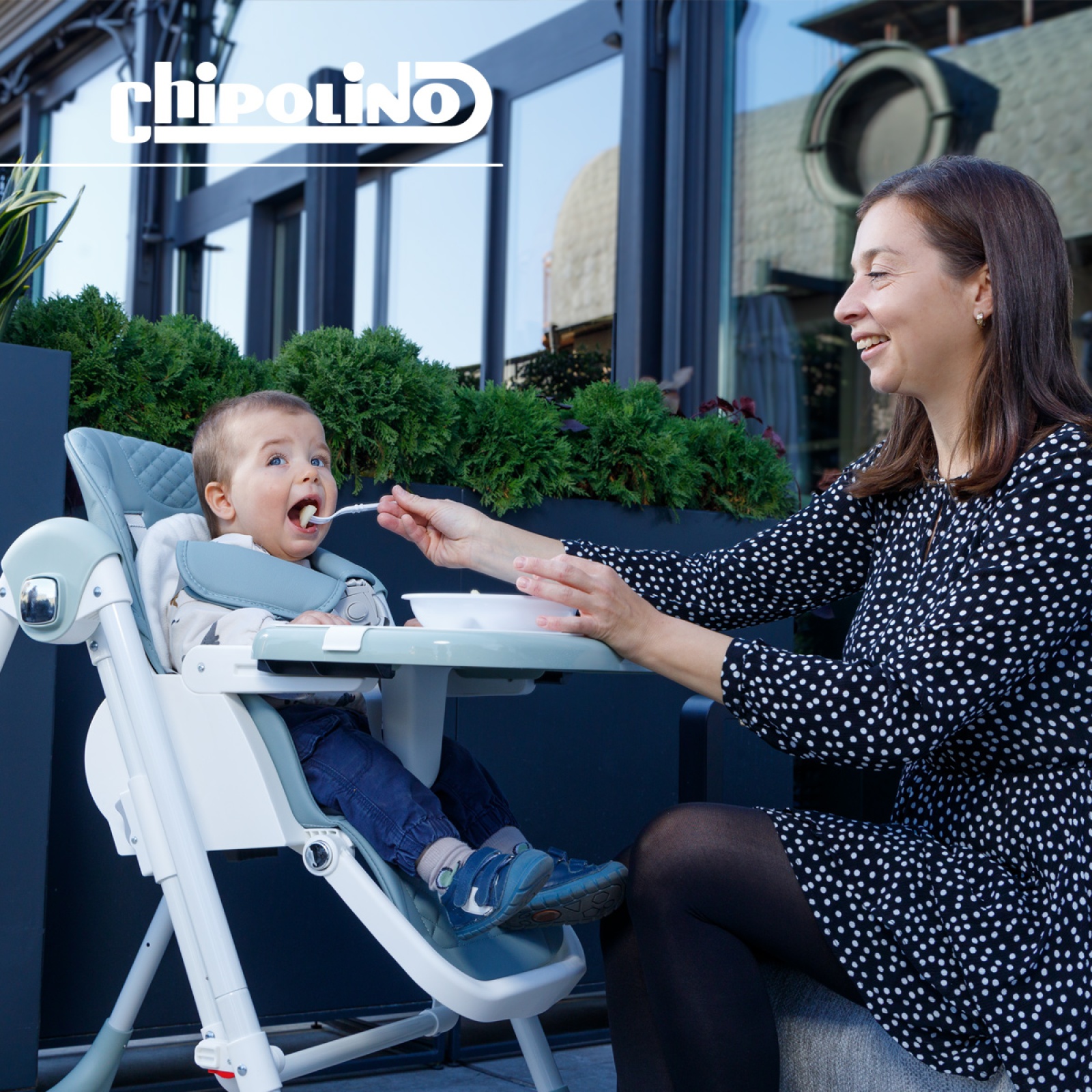 • Високиот стол лесно се трансформира во лулашка.