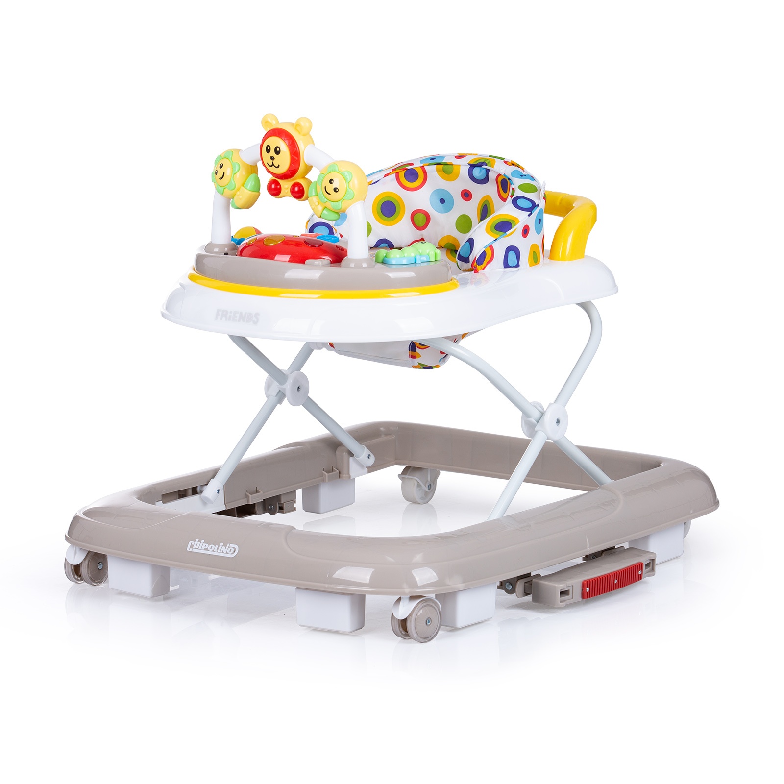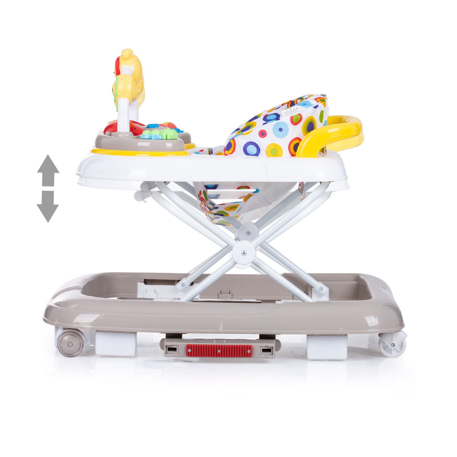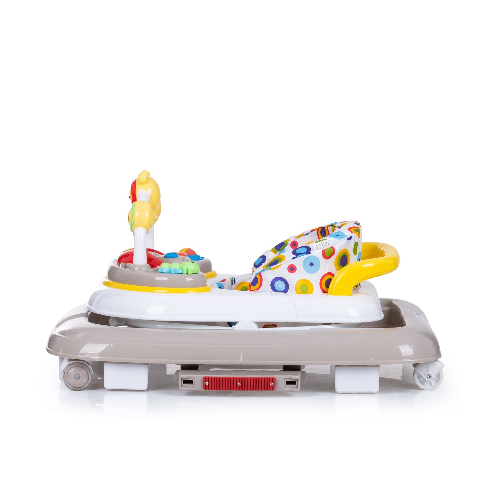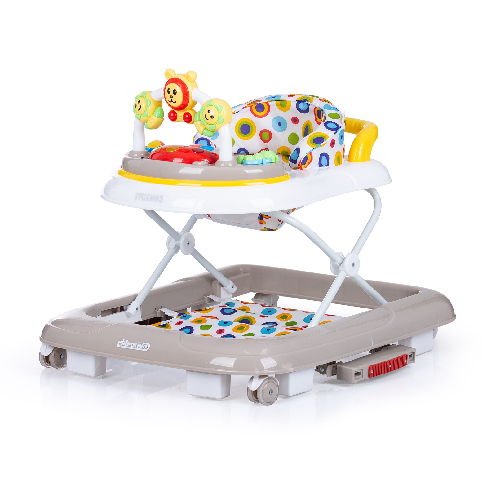 Бебешката проодувалка 4 во 1 Party го охрабрува бебето да ги направи своите први чекори и ја подобрува неговата рамнотежа и координација. Бојите и звуците на таблата со играчки ги стимулираат креативноста на детето и ги развиваат неговите слух и вид.