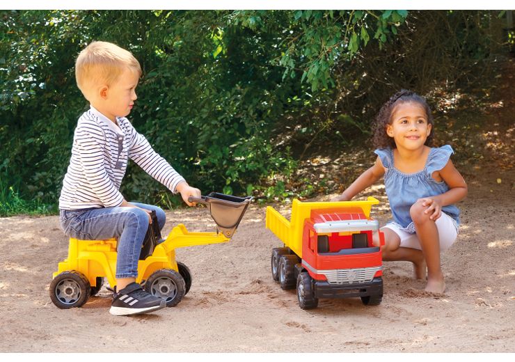 Овој голем багер за седење е дел од серијата „GIGA TRUCKS“ и комбинира стабилност, реална функционалност и долготрајна игра.