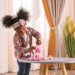 Viga Toys 44543 – Tea & Coffee Service „Pink Flower“ е шармантен дрвен сет со кој децата можат да организираат свои чајни дружби и да играат улоги домаќин или гостин. Сетот е внимателно изработен од мазно дрво и украсен со нежни розови цветови кои му даваат елегантен изглед. Преку оваа игра, децата ја развиваат креативноста, социјалните вештини и координацијата помеѓу очите и рацете.