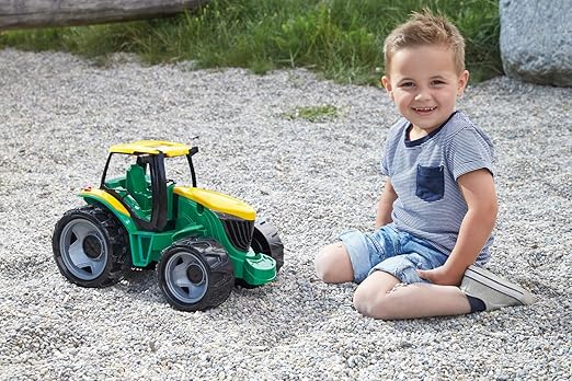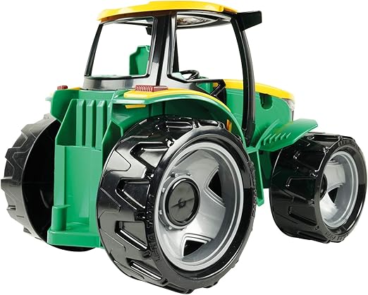 Lena GIGA TRUCKS Tractor (модел 02121) – голем паметен трактор, зелено-жолт, со затварачки „sunroof“, две галванизирани челични оски и капацитет до 100 kg, погоден за деца од 3+ години