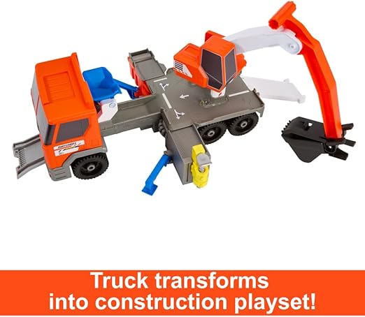 Matchbox Transforming Excavator – голем камион со 1:64 ископувачка станица, приколка, 4 додатоци и мини камион (за деца 3+ години)