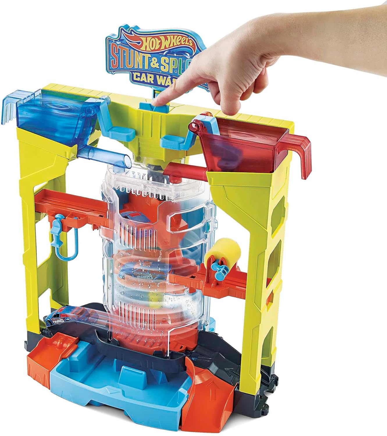 🌊 Водопад со промена на боја: Вклучува Hot Wheels Color Shifter возило (скала 1:64) кое ја менува бојата при контакт со вода.