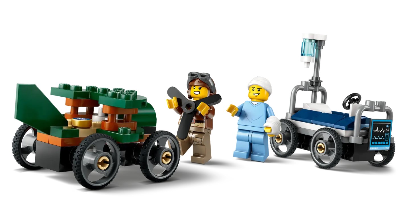 Децата можат да создаваат уникатни трки и да ги развиваат своите фантазии додека управуваат со овие две возила и ги водат мини фигурите – пилот и пациент – кон забавни и возбудливи приказни. Совршен за индивидуална или групна игра, овој сет поттикнува креативност и координација.