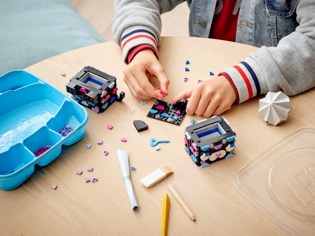 Склопи, декорирај и чувај ги твоите најважни мали предмети во ова уметничко и многустранo ќоше – LEGO® DOTS Таен држач!