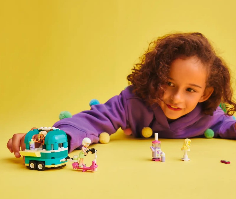 Откриј ја забавата со LEGO® Friends мобилната продавница за bubble tea и придружи им се на Лео и Матилда во приготвувањето на вкусни и освежителни напитоци за нивните пријатели.