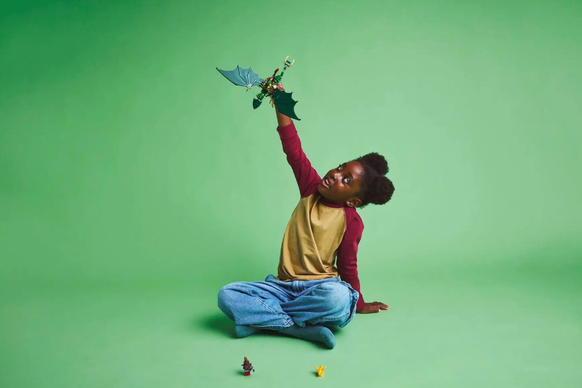 Подготви се за фантастична акција со Зелениот шумски змеј на Лојд, инспириран од светот на LEGO® NINJAGO. Овој прекрасен змеј има подвижни крила, нозе, опашка и вилица, што овозможува реалистична и динамична игра. Со својот уникатен изглед и шумски дизајн, змејот ќе ги воодушеви сите љубители на змејови и нинджа херои.