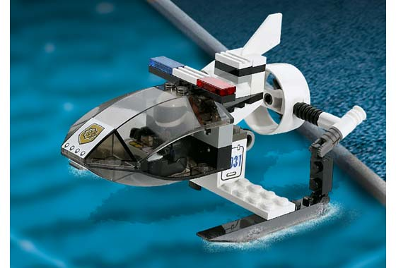 Хеликоптерот има реалистичен изглед со ротирачки пропелер, подвижни скии и кабинa што се отвора за мини-фигурката пилот. Идеален е за авантури со висока брзина над градот и вежби за спасување. Сетот доаѓа со класични LEGO полициски ознаки и е едноставен за склопување, што го прави совршен и за помали деца.