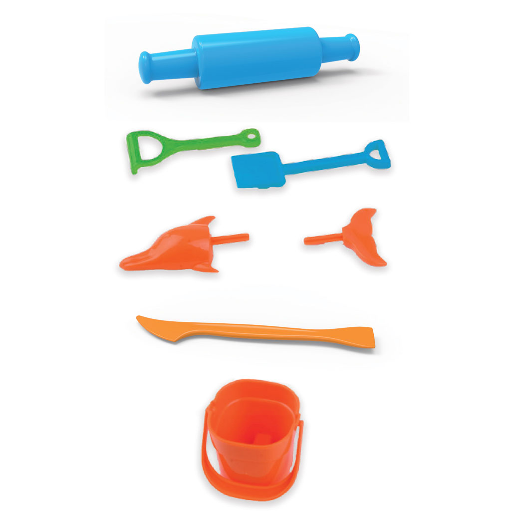 Производот се состои од 6 дела и 500 грама песок за игра. Песокот за игра може да се притиска и не се суши. Развива моторни вештини. Помага во развојот на фантазијата и сетилата. Производот не е погоден за деца под 3 години. Децата под 3 години треба да играат под надзор на возрасни. Ги има поминато сите здравствени тестови.