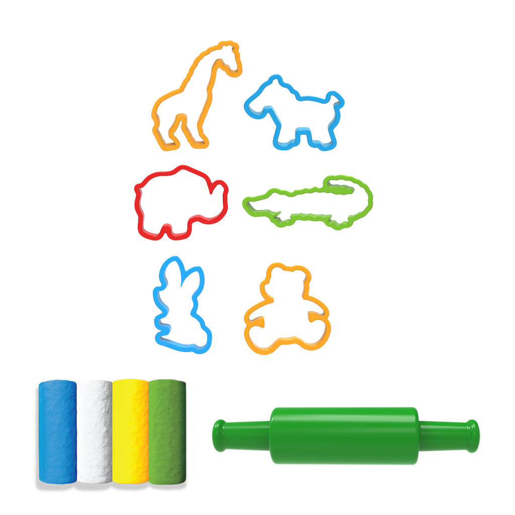 Што велиш да се забавуваме со животните од овој сет? Продуктот вклучува 4 бои пластелин, 6 калапи и 1 ваљак. Ги развива рачните вештини, ја збогатува имагинацијата, ги стимулира сетилата и го зајакнува учењето. Продуктот не е погоден за деца под 3 години. Ги има поминато здравствените тестови. Боите на калапите и пластелинот може да варираат.