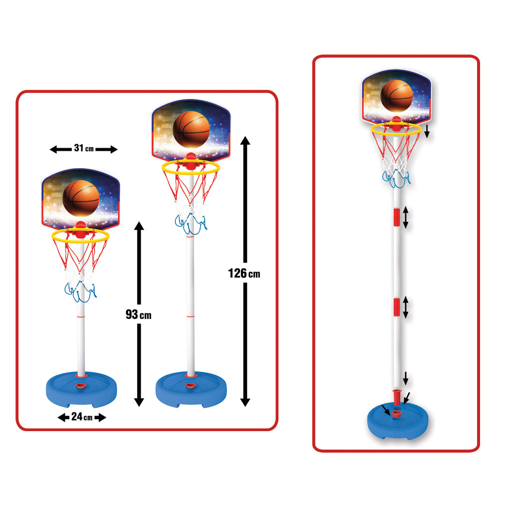 Уживајте во играње кошарка! Производот може да се користи на 2 различни начини: 93 cm и 126 cm. Производот не е погоден за деца под 3 години. Ги има поминато здравствените тестови.