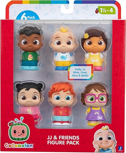 CoComelon JJ and Friends – сет од 6 фигури: JJ, Bella, Cody, Nico, Nina и CeCe, играчки за деца и предучилишна возраст.