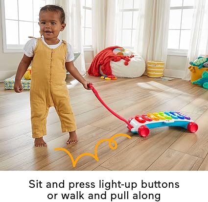 Fisher‑Price г ксилолемофон што светка – електронска играчка за влечење со едукативни песни, за бебиња и деца од 9–36 месеци