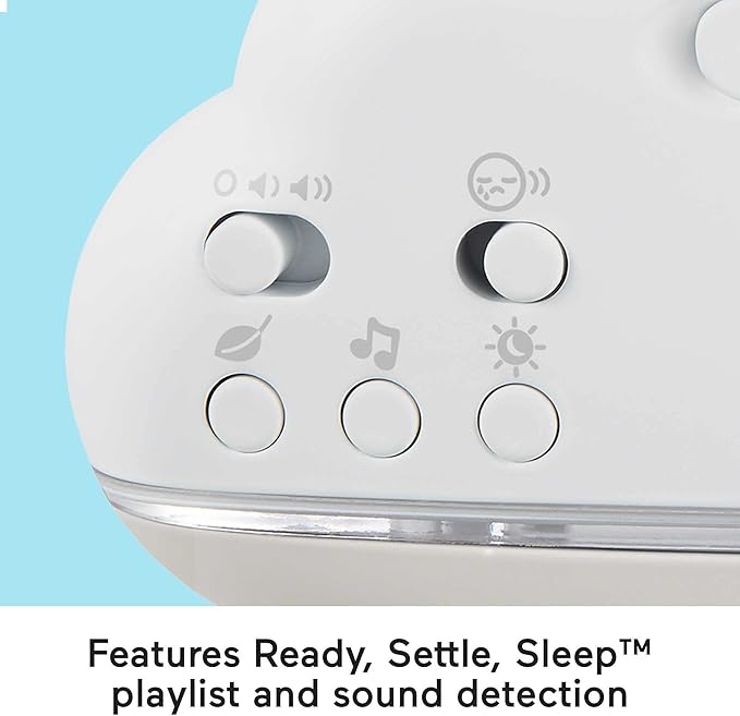 Fisher‑Price Sound Machine Calming Clouds – мобилна и смирувачка звучна играчка со музика и светла, се користи како играчка за над креветче или столна ламба која испишта звуци за новороденчиња до мали деца.