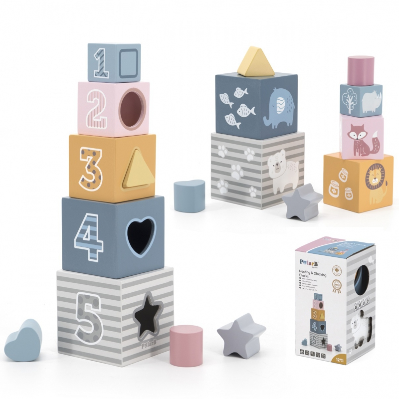 Играчката е изработена од висококвалитетно дрво и обоена со нежни, пастелни, нетоксични бои – препознатливи за PolarB линијата. Совршена е за поттикнување на креативна и безбедна игра.