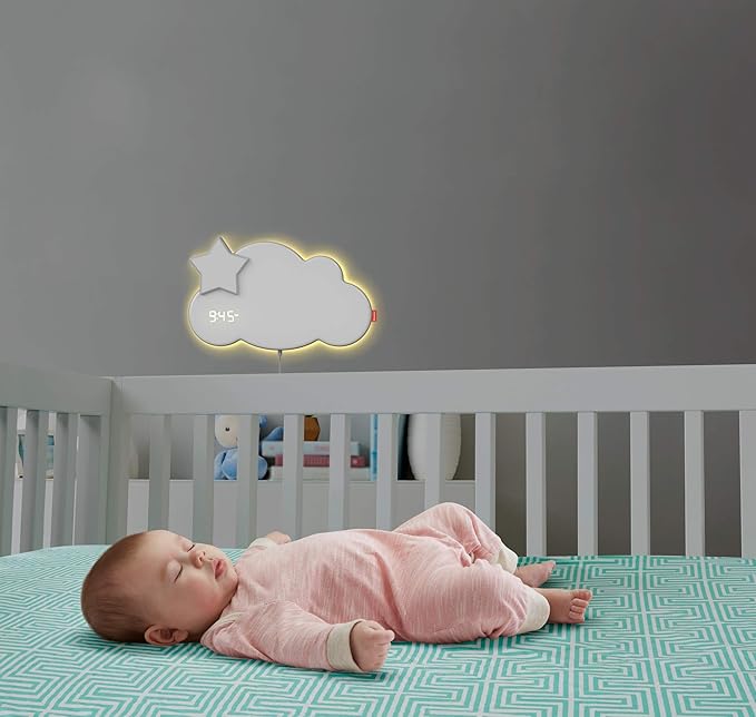 Помага лесно да се воведат редовни навики околу спиењето со иновативен 3‑во‑1 систем: ѕидна навигаторка, тренер за спиење и звучна машина за бебиња и мали деца