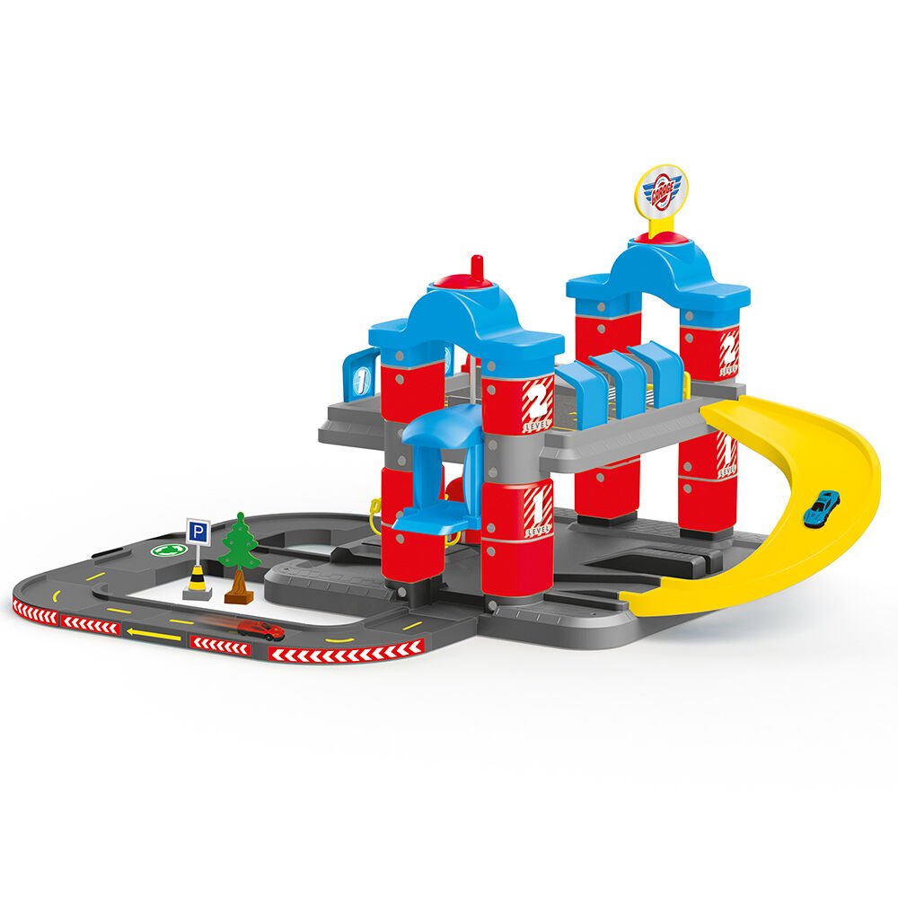 Соодветно за деца на возраст од 36 месеци и повеќе. Има димензии 71×35.5×56 см. Вклучени се два метални автомобили. Има функција на лифт. Кога децата ги возат своите автомобили од горните спратови до долните, тоа им помага во развојот на нивните тенденции за игри со улоги.