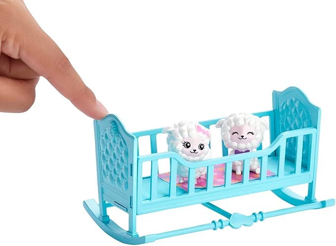 Помогни ѝ на куклата Skipper да се грижи за две преслатки јагненца во ден полн со игра, хранење, дремки и многу повеќе со овој Barbie сет!