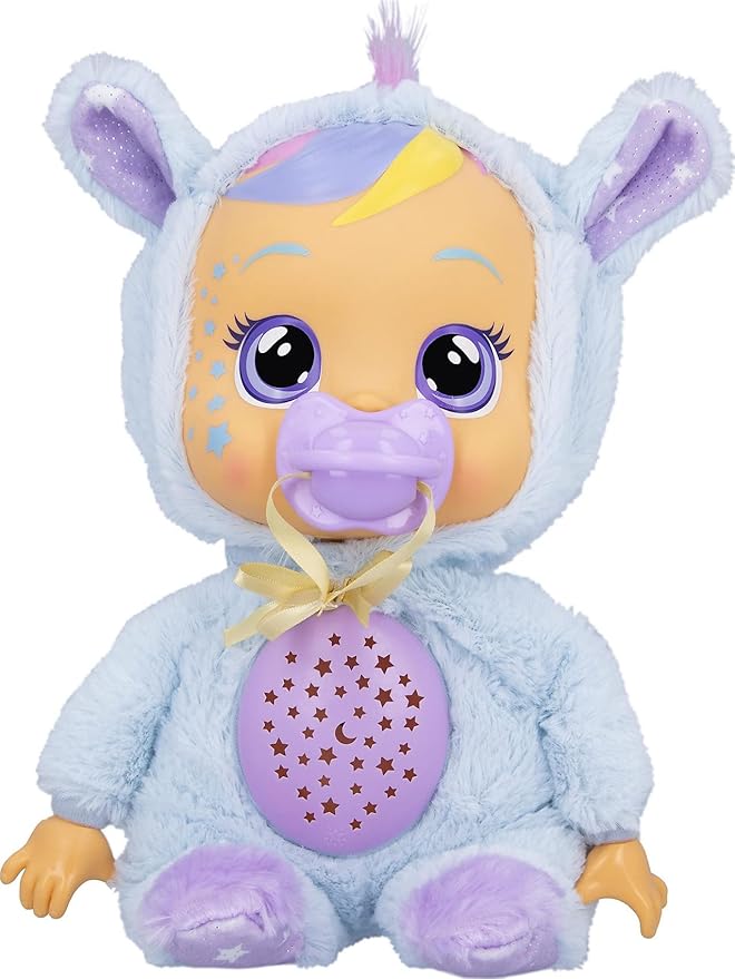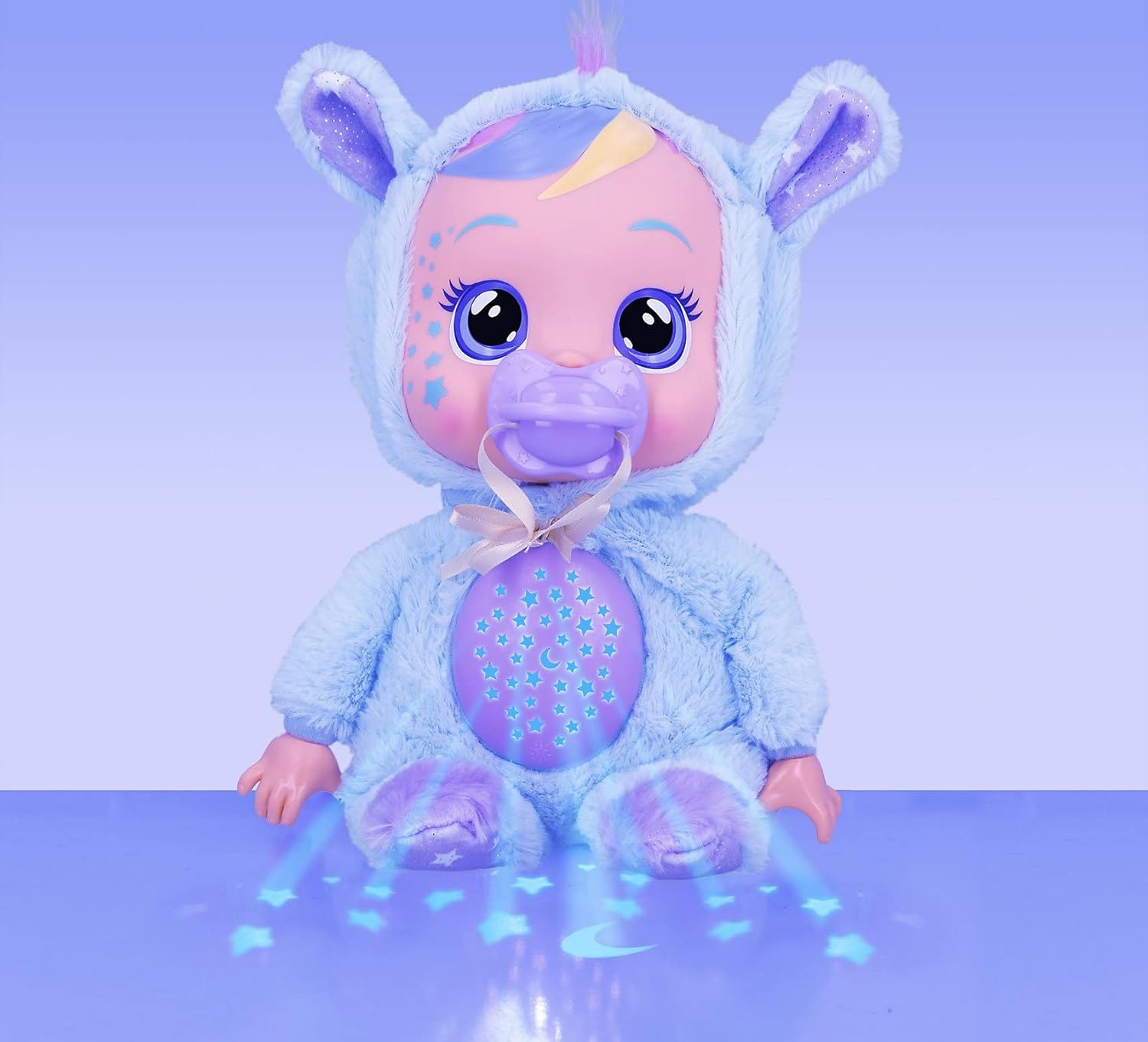 Cry Babies Goodnight Jenna – 30 cm бебе кукла со 5 приспивни песни, 8 звуци и проектор на ѕвездено небо (сина)