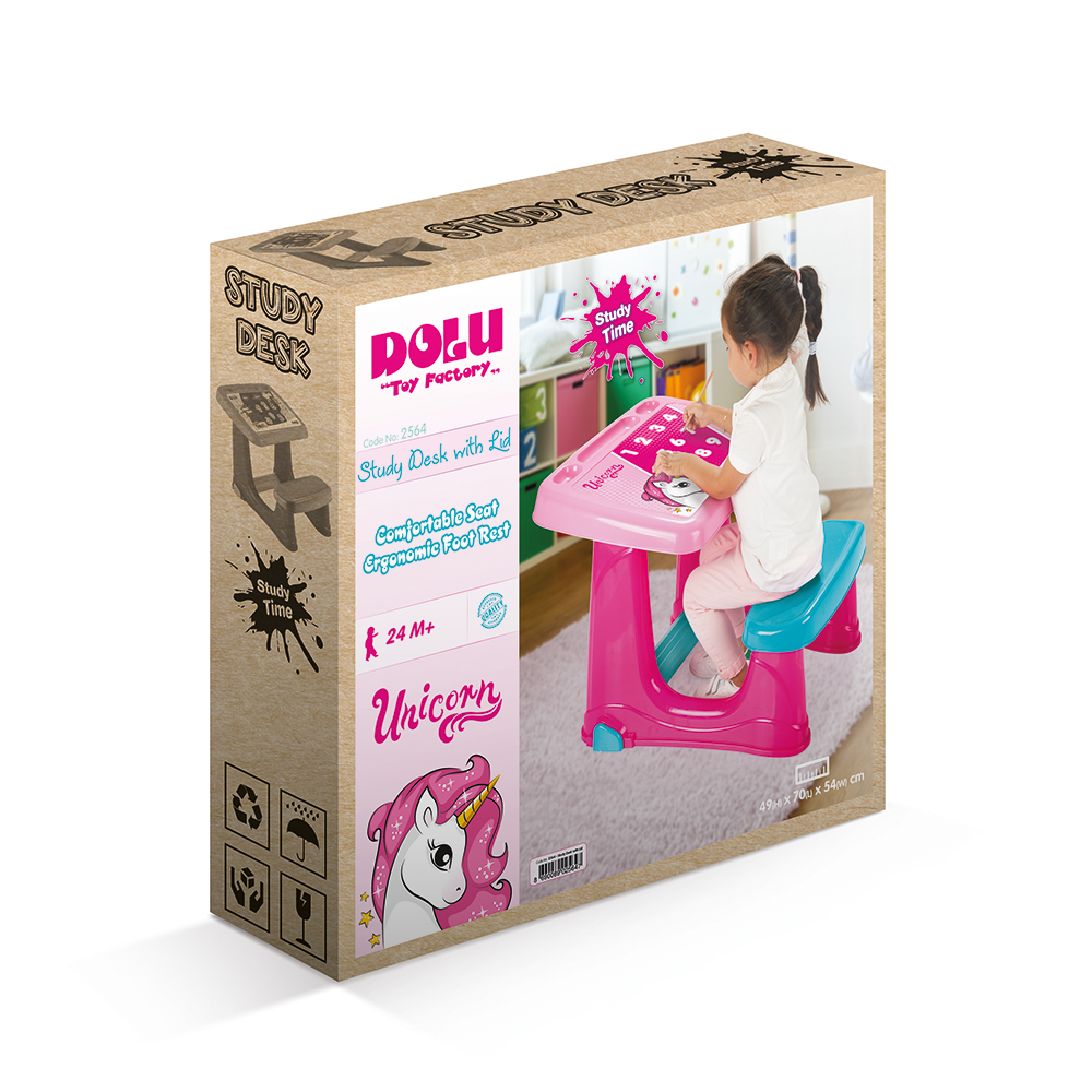 Соодветно за деца над 24 месеци. Димензии: 49 x 54 x 72 см. На работната маса има места за поставување на пенкала и слично. Има ергономско одморалиште за нозе. Делот за седење е удобен. Спакувана во кутијата. Лесно се монтира.